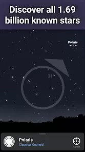 - Celestial object information: Displays detailed information about stars, planets, and deep-sky objects, including their names, distances, and characteristics.